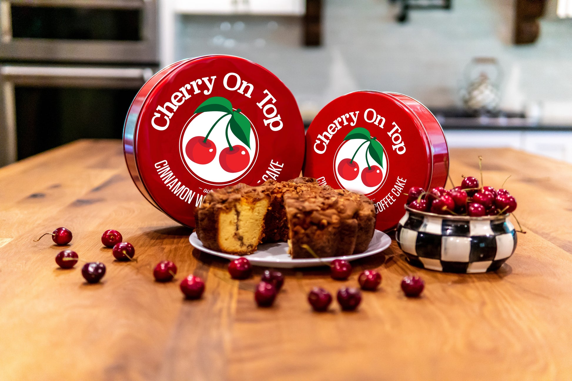 Open the Bright Red Tin and find an unbelievably moist and delicious cake made with walnuts, butter, sour cream and the freshest of ingredients. A cinnamon strudel fills the center and tops the cake to make it the best coffee cake you have ever eaten. It’s just like Granny used to make. Just like Granny’s there are NO Preservatives! Available in three sizes, including a new individually portioned mini cake.