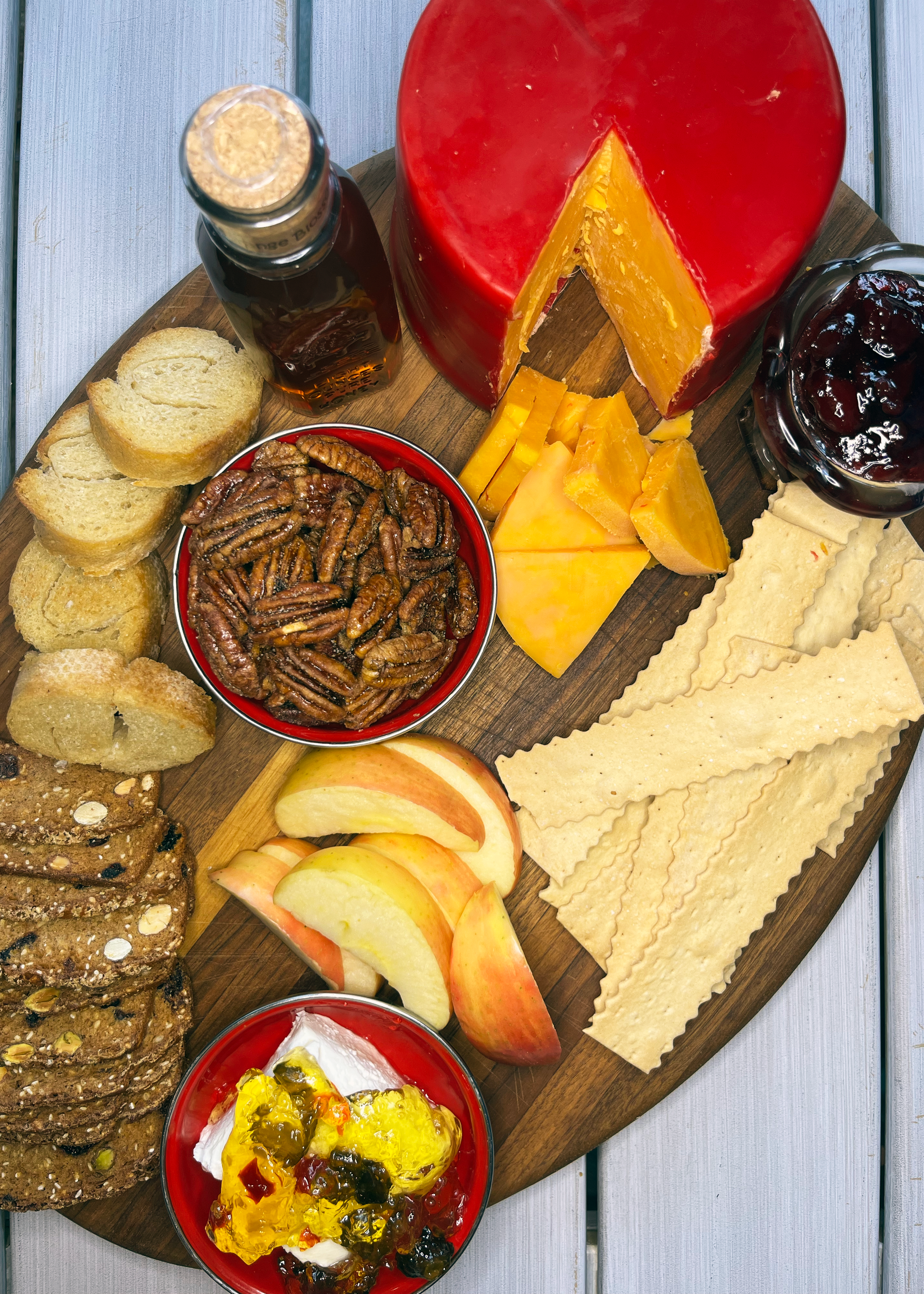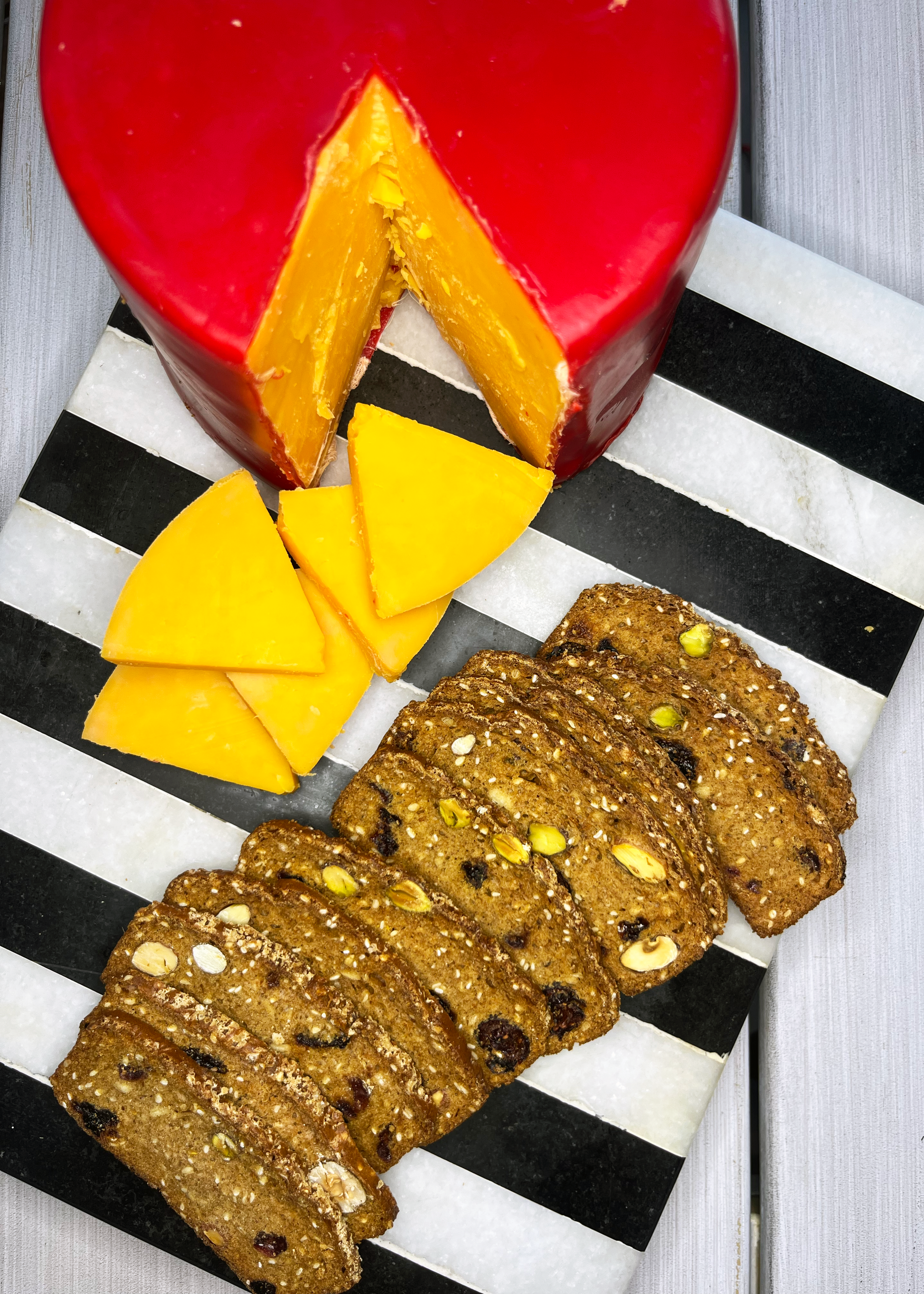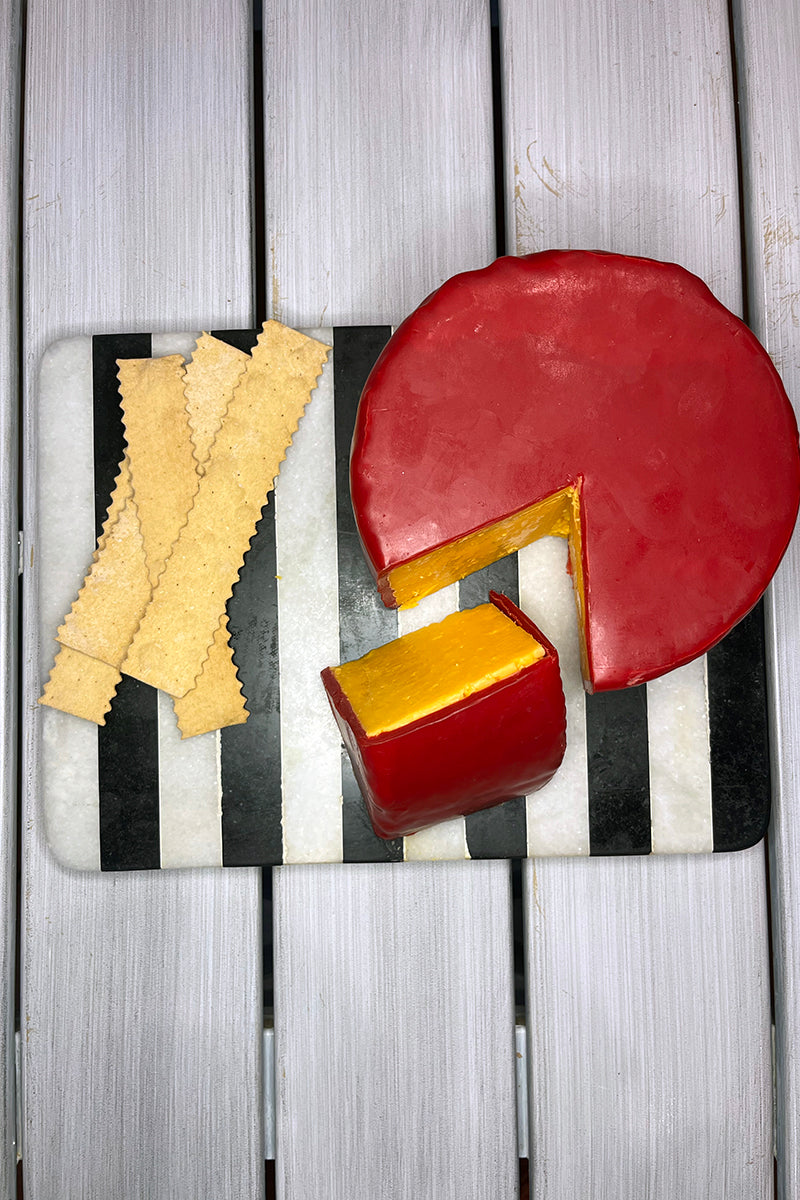 Oh goodness, this Old Fashioned Red Rind Cheddar is absolutely the most delicious cheese we have ever tasted! Enjoy it on its own or pair with our favorite Olive Oil & Sel Gris Flatbread crackers for a perfect gift or the beginning of a great gathering!