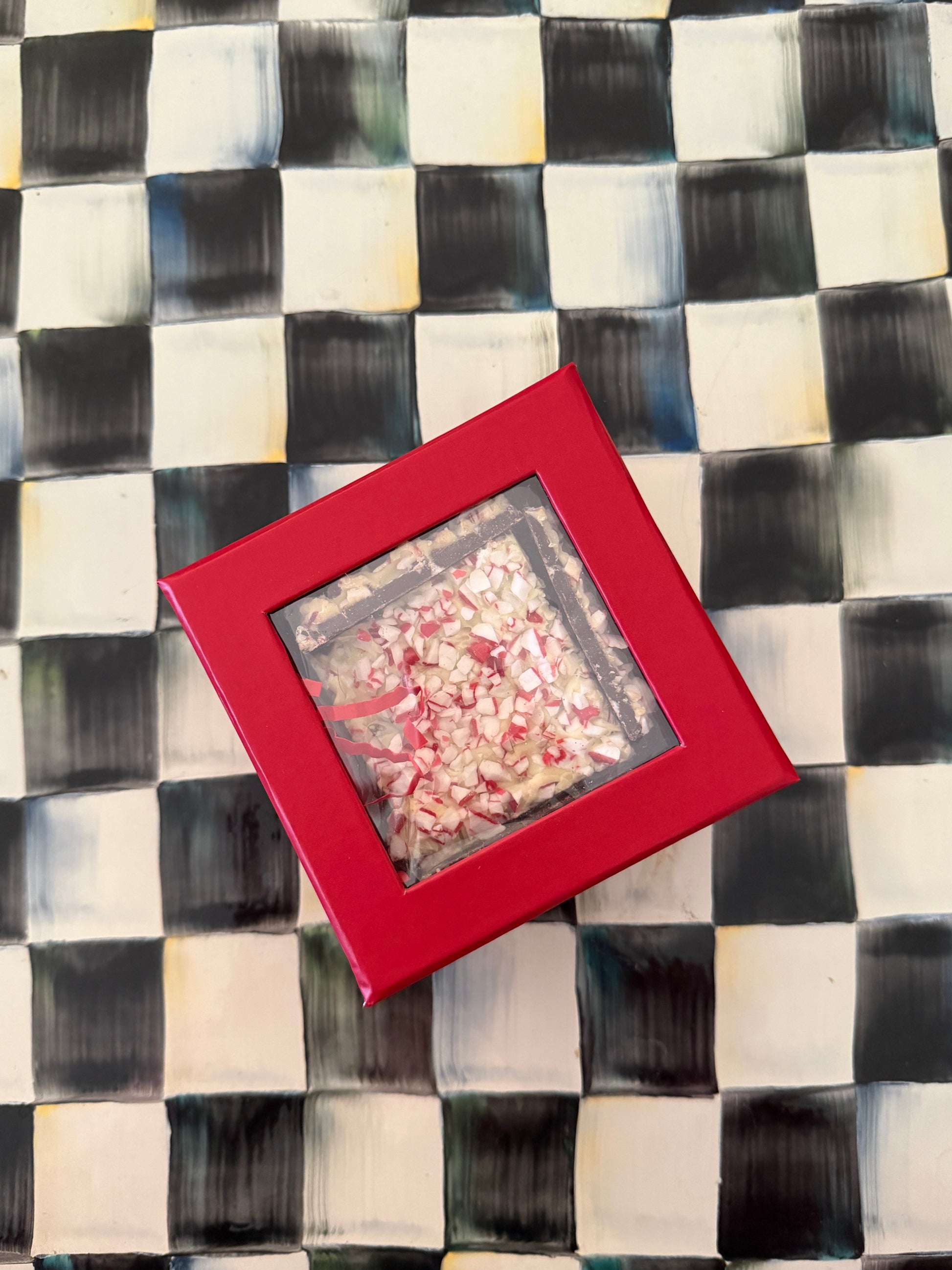 We are OBSESSED! This Peppermint Bark tastes like Christmas morning...but it might not last that long. A base of Belgian dark chocolate is topped by Italian White chocolate with flecks of vanilla bean and finished with a generous heap of American peppermint crushed tiny to make it easy to eat. We dare you to share it! Or keep it all to yourself. Your secret is safe with us.